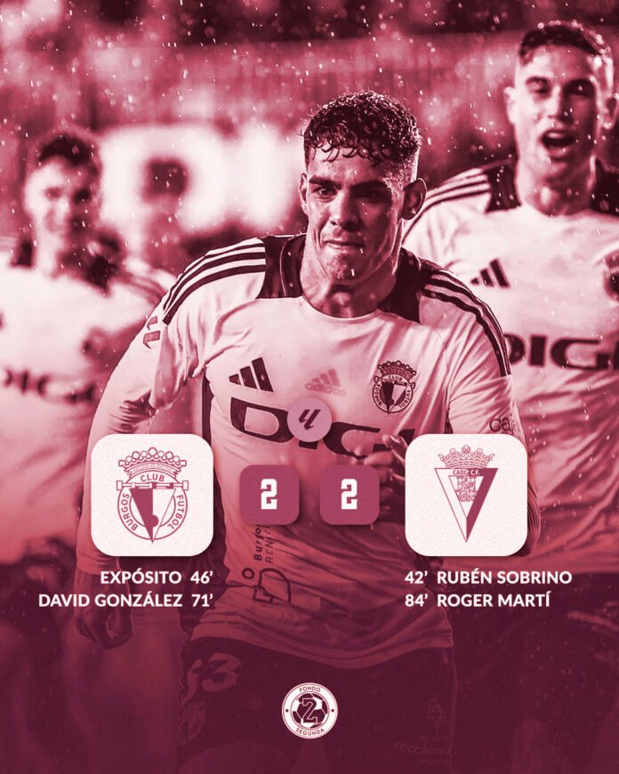 El partido ya, cuando parecía sentenciado y toda la ficción burgalesa estaba en estado de éxtasis, recibía un jarro de agua fría con un gol del salido del banquillo Roger Martí, que no veía puerta desde el partido ante el Córdoba Club de Fútbol. Este gol hizo que los dos equipos acabaran conformándose y amarrando el resultado dando por válido el punto logrado en el día de hoy.