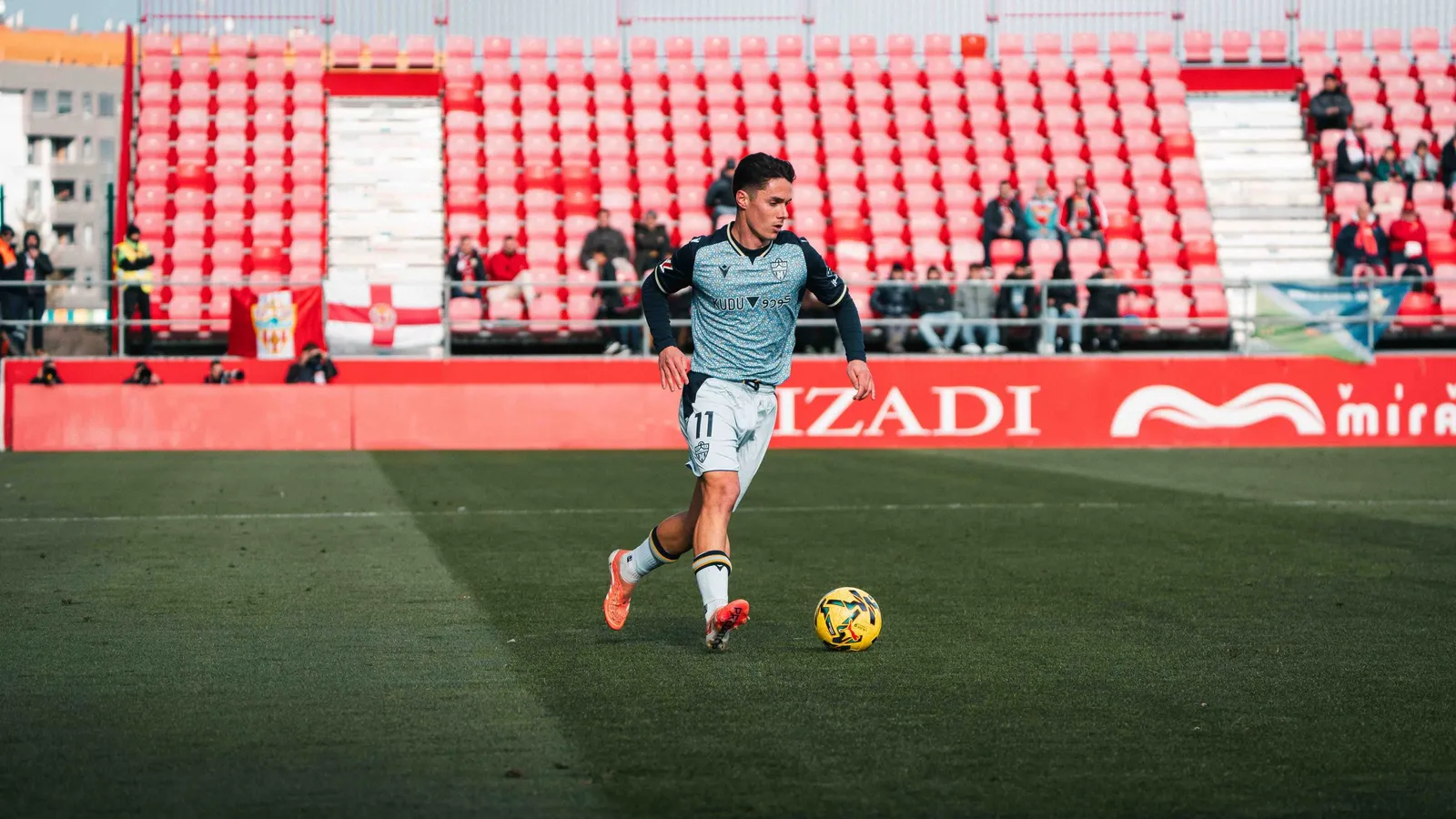 El fútbol volvía a Anduva tras varios meses de remodelación con un frenético Mirandés – Almería. A los diez minutos, ante la pasividad de la zaga del Almería, Hugo Novoa ejecutaba un centro raso que recaía en Javi Hernández, nuevo fichaje del Mirandés, para batir a Andrés Fernández e inaugurar el electrónico. El cuadro rojiblanco abusaba de los balones largos que terminaban en posesión local. Sin embargo, Stefan Dzodic e Iddrisu Baba cogieron pronto la batuta para sosegar al equipo.
