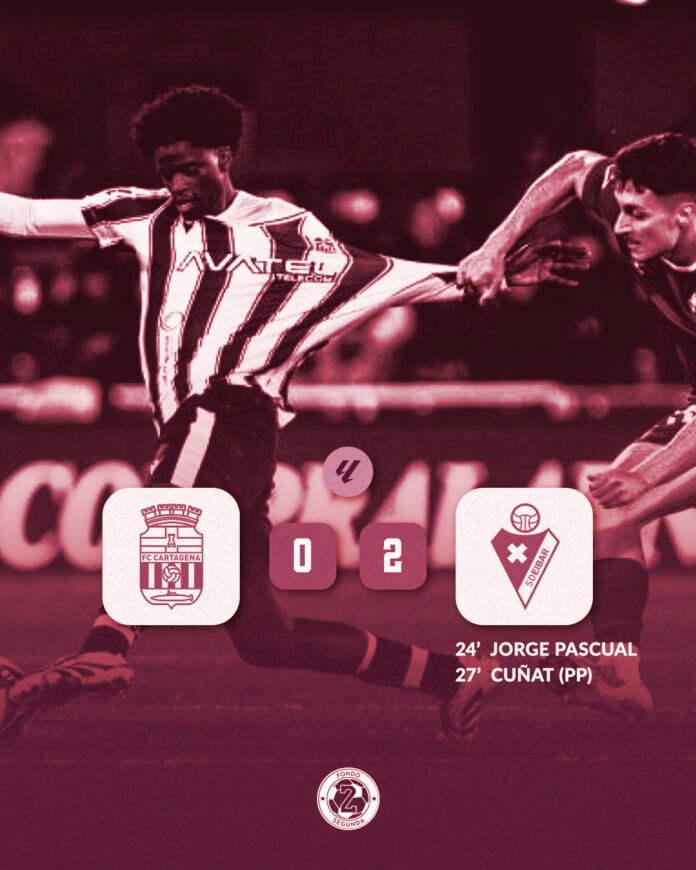 El FC Cartagena dilapidó las pocas esperanzas que le quedaban ante la SD Eibar. Los pupilos dirigidos por Guillermo Fernández Romo no reaccionan. El inicio del encuentro fue medianamente igualado. Pero pronto el Eibar tomó el mando. Agarró el balón y fue metiendo atrás a su rival. Eso sí, Álex Millán tuvo una ocasión aislada en la que incluso pidió penalti de Magu. Sin consecuencias.