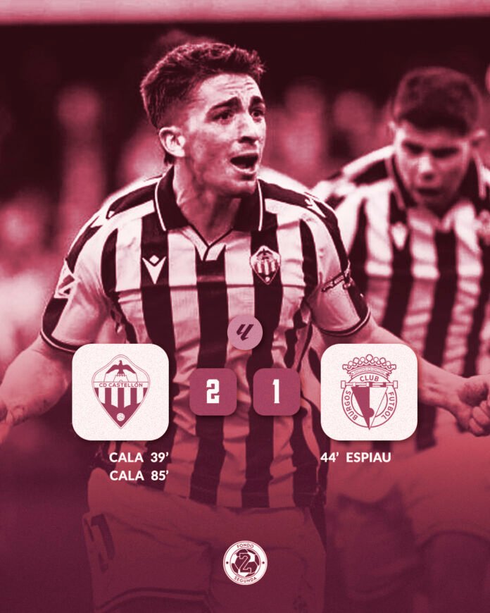 Nick Markanich se levantó más que nadie para rentar un centro preciso desde la banda, pero Cantero estuvo atento para despejar a córner. En el 85’, apareció Cala para volver a adelantar al Castellón. Centro de Raúl Sánchez que remató de volea y medio cayéndose el “21” albinegro para mandar el balón al fondo de la red. En el 98’, el colegiado pitó penalti a favor del Burgos por mano de Alberto. Curro falló la pena máxima.