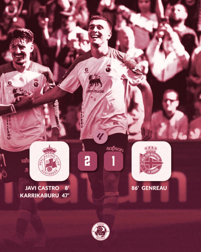En la reanudación, el Racing se dedicó a guardar la ropa. Y el Dépor no tuvo ni la intensidad ni la eficacia para crear ningún tipo de peligro. Pero en el minuto 85, rompió el letargo. Tras un pase en profundidad, Genreau mete picante al partido con el 2-1 con un disparo espectacular al primer palo. Fue un puro espejismo. Incluso en el minuto 94 llegaría la roja al autor del tanto visitante, por un agarrón cuando un jugador local se iba solo a portería, tras un mal pase de Pabló Martínez.
