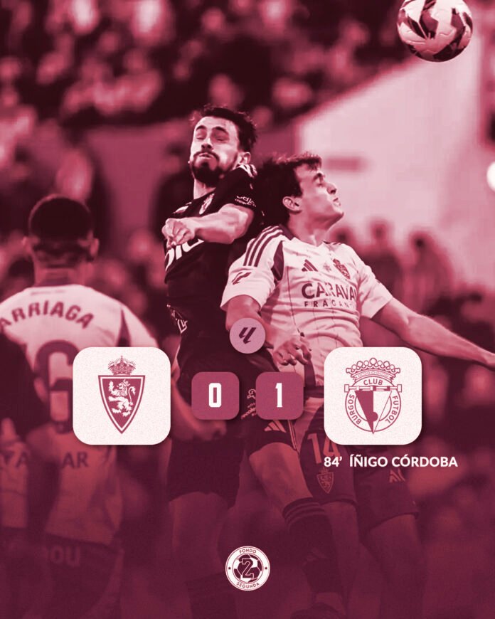 En el 73, Elady puso un centro exquisito al área pequeña del Zaragoza pero no hubo remate. Podría haber sido el primer gol del partido. El Burgos marcaría en el minuto 84. El gol llegaría de mano de Iñigo Córdoba. Un golazo en mayúsculas, el Puskas de la jornada. Iñigo Córdoba le pega un trallazo y marca por toda la escuadra, imposible para Joan Femenías.