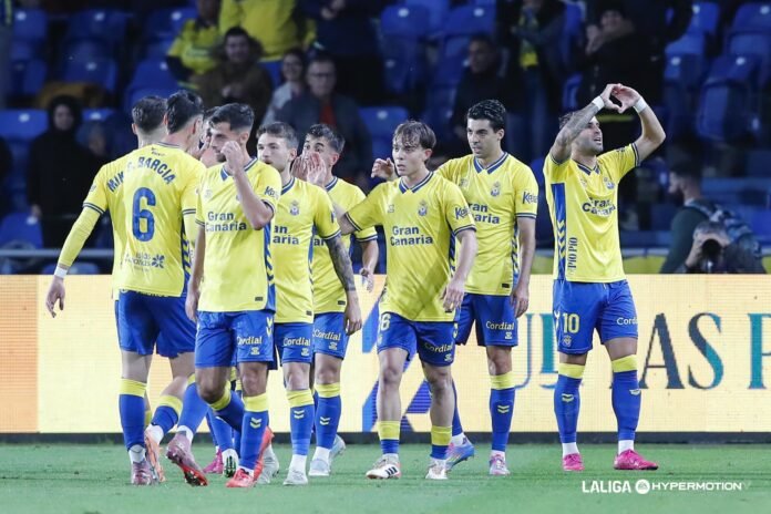 La UD Las Palmas no dejó pasar esta vez la oportunidad para dormir en ascenso directo. La visita de la Cultural Leonesa era propicia para que el conjunto canario demostrase ambición y lo hizo desde muy pronto. No se había llegado al minuto 2 cuando Enrique Clemente se adelantaba a Édgar Badía para adelantar a los suyos. El lateral izquierdo, sin duda, lucharía por ser el jugador más mejorado de la pasada temporada a esta. Presión alta, circulación de balón muy rápida y la Cultural incapaz de salir de esa espiral.