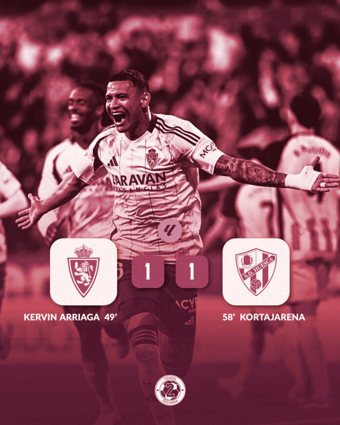 El Zaragoza no encontraba la forma de desmontar la defensa del Huesca a base de juego posicional, por lo que tuvo que aparecer el balón parado para marcar la diferencia. En un saque de esquina y prácticamente sin querer, Arriaga mandaba el balón a la red para hacer estallar a toda La Romareda. Los blanquillos habían hecho lo más difícil, pero una vez más no supieron reaccionar al estímulo y el Huesca no tardó en devolver el empate al marcador gracias a una nueva aparición ofensiva de Gerard Valentín, que le sirvió el gol a Kortajarena.